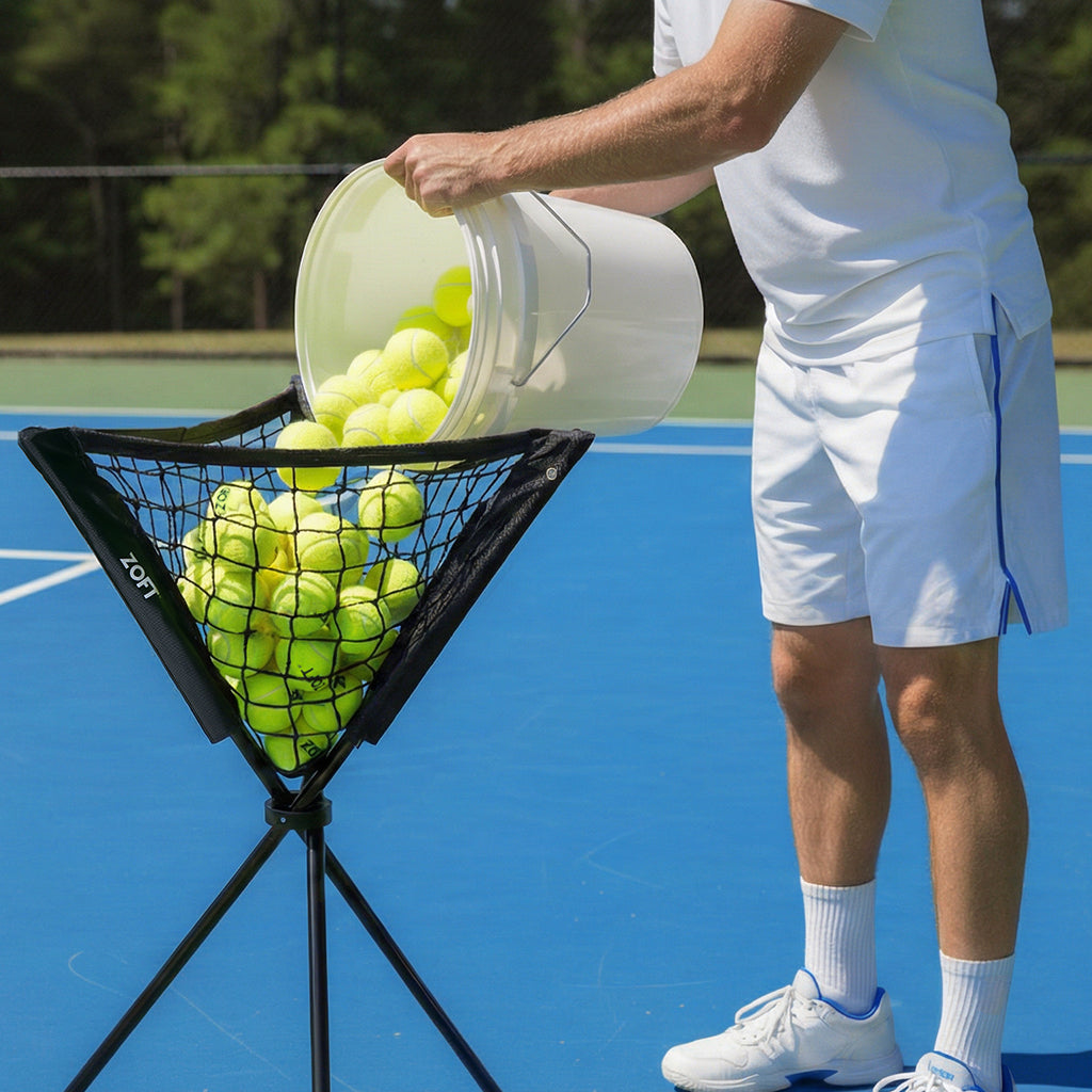 Spend less time collecting balls and more time perfecting your serve with the Zoft Tennis Pop Up Ball Caddy. Designed for coaches and players who value efficiency on the court, this lightweight caddy sets up in seconds, eliminating the hassle of complex assembly. Its sturdy frame holds tennis balls at waist height, saving your back from constant bending during practice sessions. When training is over, the caddy collapses effortlessly into a compact carry bag, making transport between courts simple and convenient.